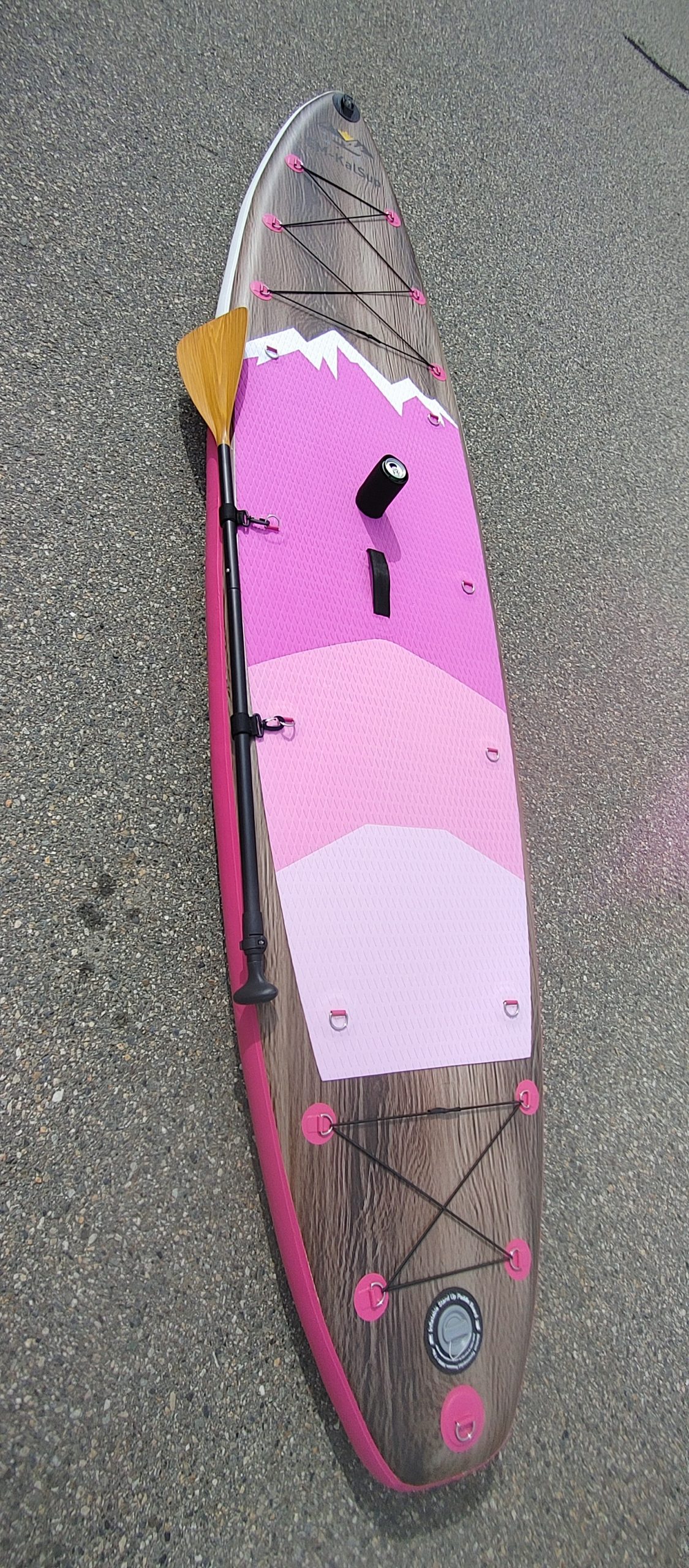 Enjoy your water adventures with this high-quality inflatable paddle board designed in Okanagan, Coldstream, BC. Perfect for an adult or an adult with a child, this board is engineered for stability, strength, and ease of use.