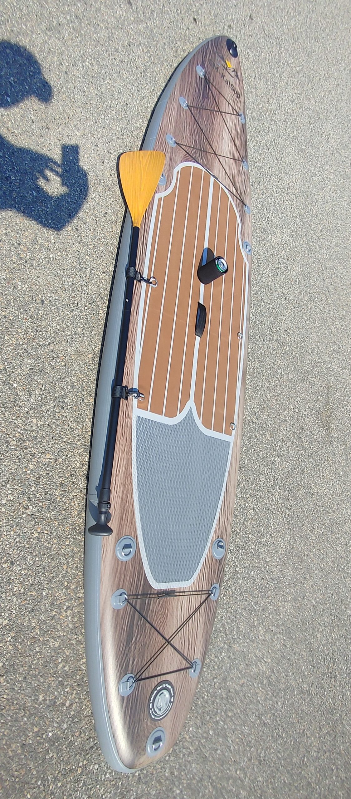 - Wood-designed paddle.